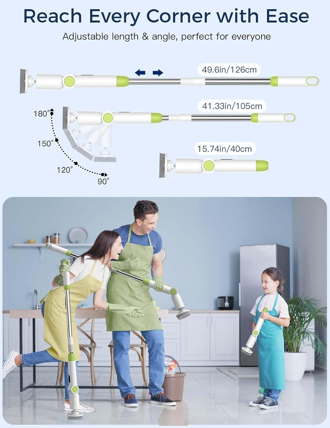 El dise?o giratorio de 360 grados alcanza rincones y bordes dif¨ªciles de llegar.