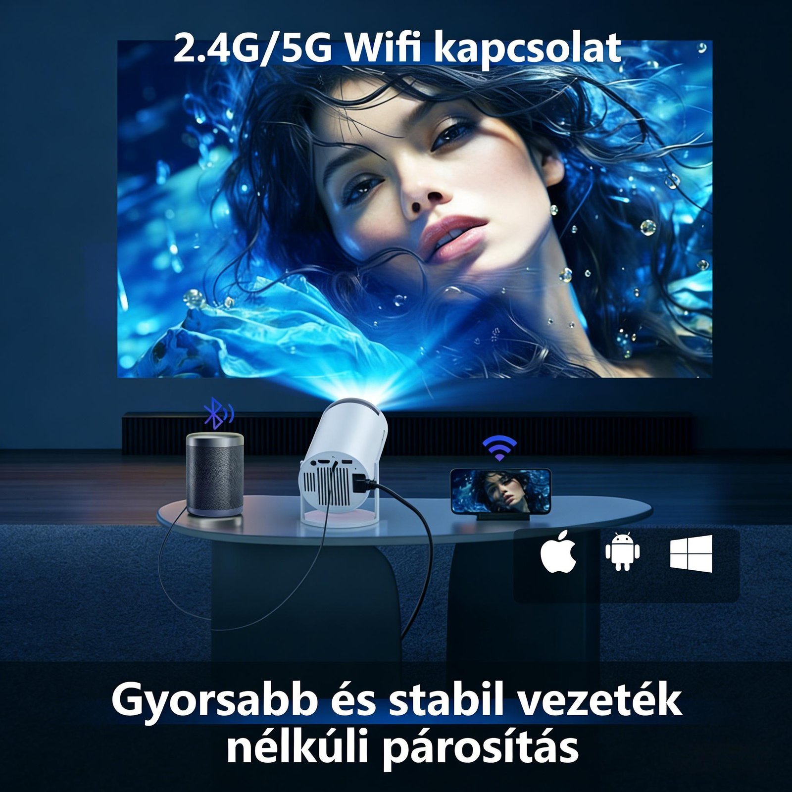 • Akár otthon, akár szabadban, akár utazás közben – az Ntaanoo 2025 mini projektor hozza el a moziszínpadot közvetlenül ön 身边!Kiváló minőségű technológiát és ultrahordozhatóságot kombinálva, ez az intelligens eszköz tökéletes minden nézési és szórakozási igényre.​📽️ Kristálytiszta Képminőség 4K Támogatással​Támogatja a 4K és 1080P Full HD felbontást – minden részlet érezhető, minden szín élénk és valószerű. Függetlenül attól, hogy filmeket, sorozatokat, sporteseményeket vagy prezentációkat néz, a projektor kristálytiszta, nagy méretű képet biztosít, amely elragadja a figyelmet. Az erős fényerővel még világos környezetben is tökéletes képminőséget élvezhet.​🚀 Fejlett Technológia: WiFi 6 & BT5.0​A legújabb WiFi 6 technológiával gyors és stabil kapcsolatot biztosít – zökkenőmentesen streamelhet Netflix, YouTube vagy más streaming platformokat, vagy csatlakozhat a telefonhoz, laptophoz a médiafájlok megosztásához. A BT5.0 bluetooth funkcióval egyszerűen párosítható bluetooth hangszórókkal, hogy a hangélmény is egyezzen a vizuális élménnyel – mozihoz hasonló szórakozást hozhat otthonba vagy szabadba.