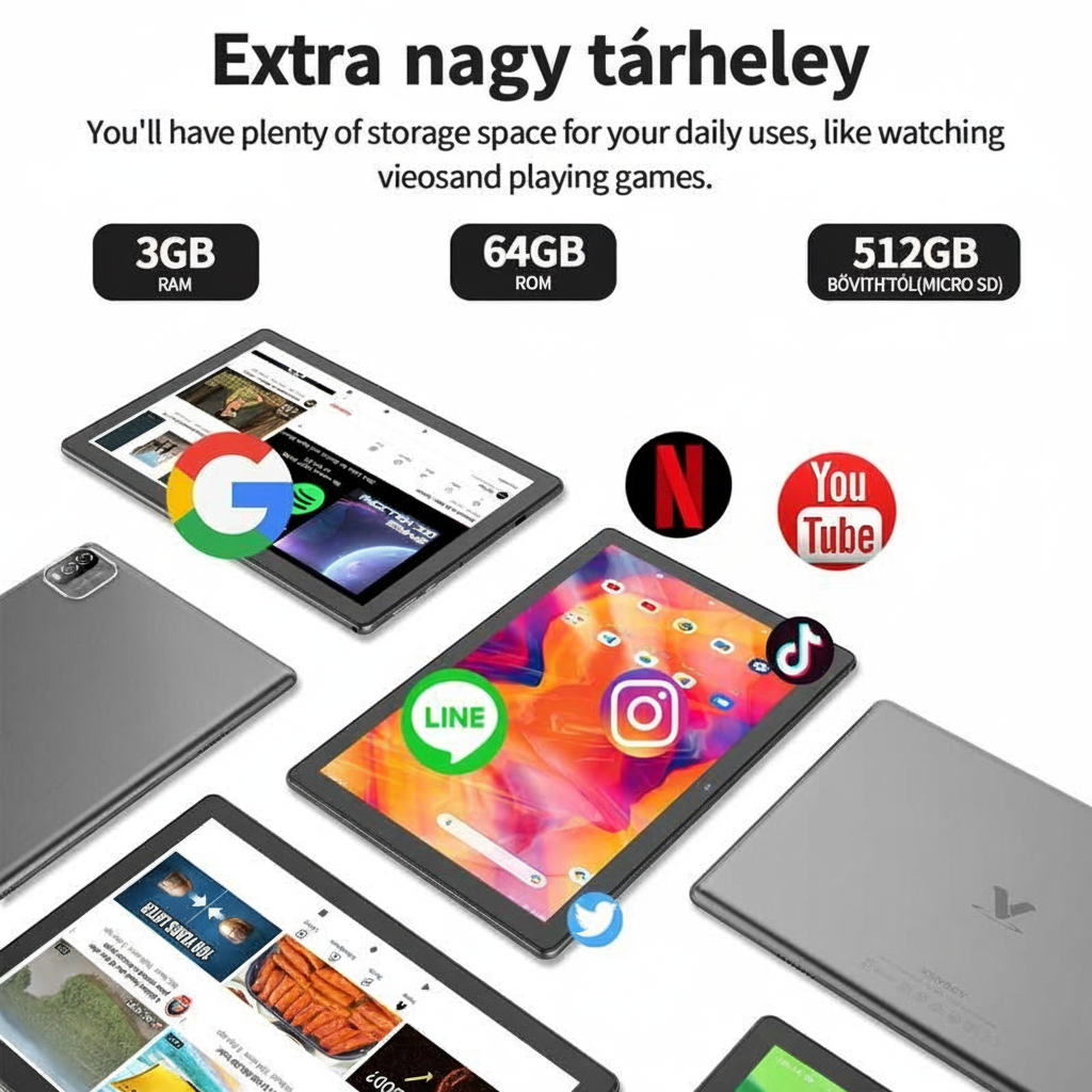 Nagyon el¨¦gedett vagyok a teljes¨ªtm¨¦nnyel! A tablet nem lassul, t?bb alkalmaz¨¢st is futtathatok egyszerre. A 10,1 h¨¹velykes m¨¦ret t?k¨¦letes a portabilit¨¢shoz, nem t¨²l nagy, nem t¨²l kicsi.
